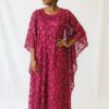 Applique Flower Kaftan Chiffon Pink Dress | Free-Size 10 – 20 | 52” Length | Floral Women’s Dress”