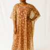 Applique Flower Kaftan Chiffon Gold Dress | Free-Size 10 – 20 | 59” Length | Floral Women’s Dress”